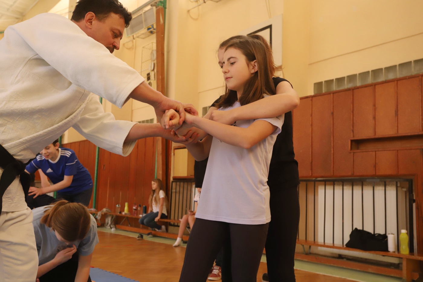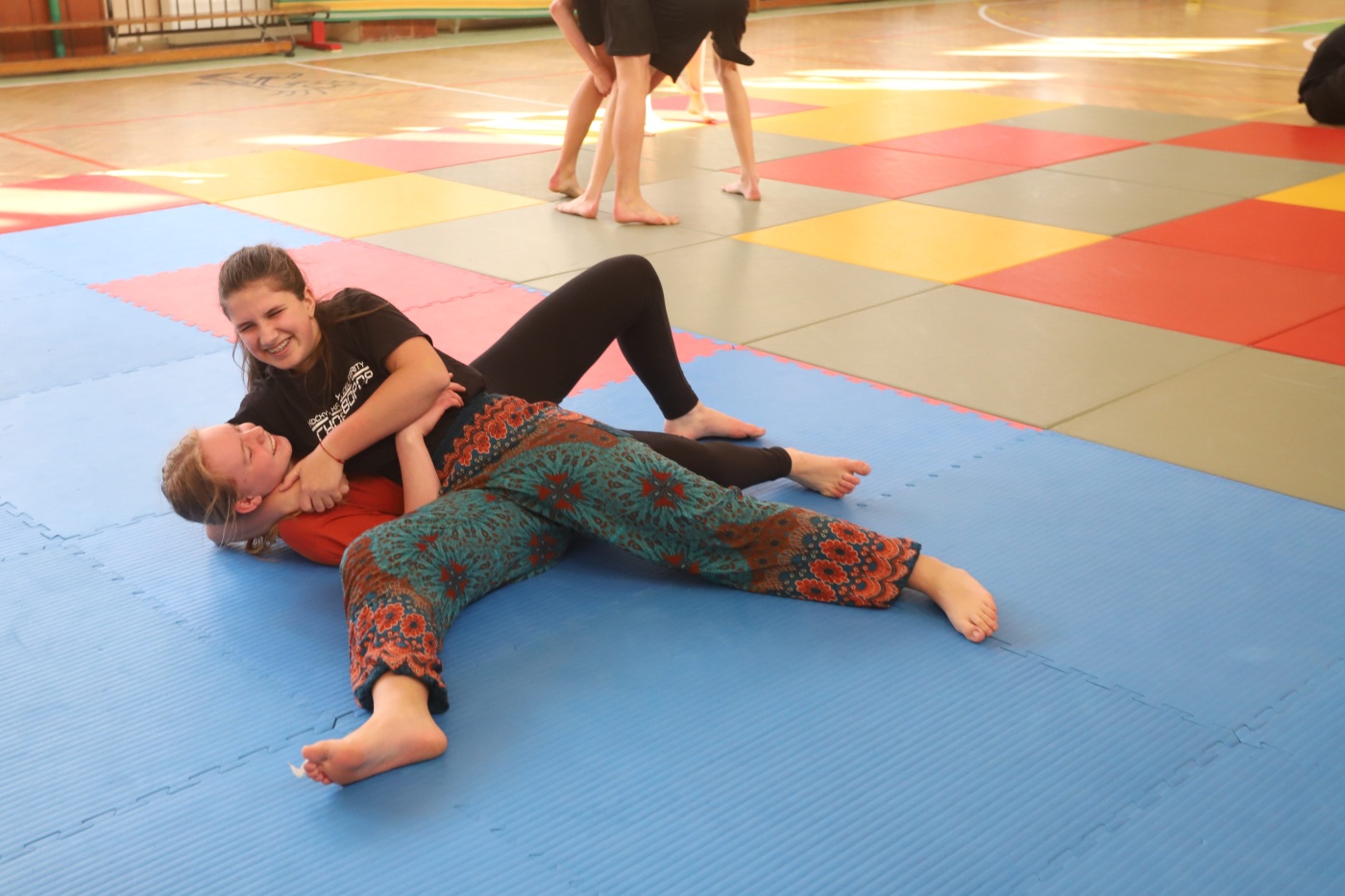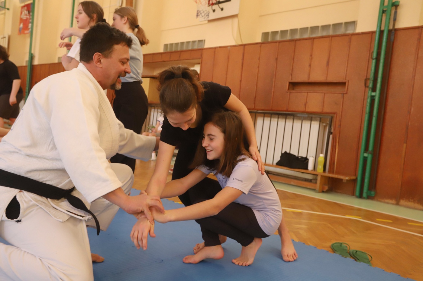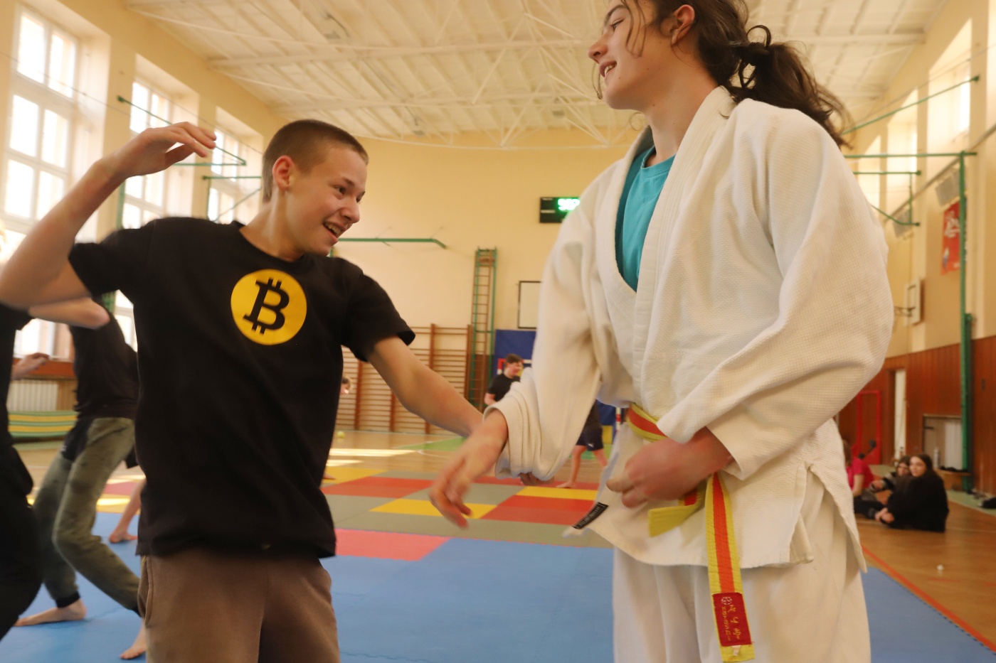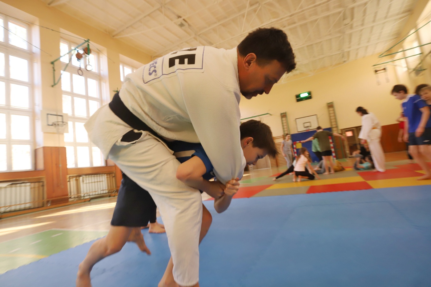 Zazněl pokyn a začal cvičný boj. Snažíme se uplatnit chvaty, které jsme se před chvíli naučili. Třeba ogoši, to znamená přehodit soupeře přes svůj bok. Nebo jinou techniku, kdy je cílem udržet protivníka na podložce. A vydržet, dokud se neozve: "Mate!" A je konec zápasu. Díky setkání s panem Kořínkem jsme si vyzkoušeli základy juda. Protáhli jsme si tělo gymnastickými cviky, naučili se, jak bezpečně padat, posilovat s váhou partnera. Zápasení bylo zcela dobrovolné a zaměřené na obranu. Vše se odehrávalo v rámci filosofie juda o vzájemném respektu. Rozloučili jsme se v judistickém pokleku seisa a uklonili se navzájem. O týden později se k 6. a 7. třídě přidali i osmáci a deváťáci.Děkujeme!