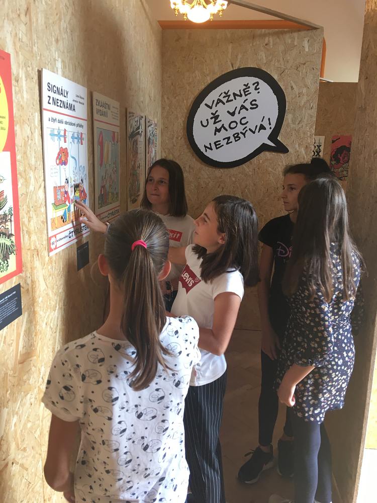 Na výstavě Ozvěny signálů z neznáma jsme zjistili, že český komix je už stoletý a tvořil ho i Josef Lada. Poznali jsme Čtyřlístek, Rychlé šípy a překvapilo nás, že je tolik komixů určených dospělým. Nejlepší ale bylo, uvelebit se a v klidu si knížky prohlížet a číst a kdo měl chuť, mohl si i vlastní komix nakreslit. VŽUM! GRRRRRR!