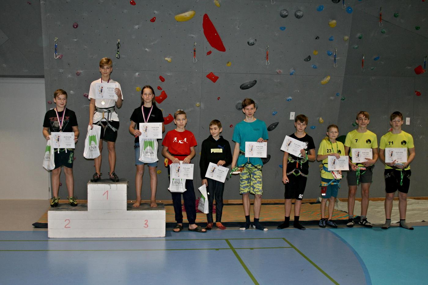 Dne 14. 12. 2021 se uskutečnily tradiční lezecké závody v Lipníku nad Bečvou. I tento rok se nám velice dařilo. V kategorii B se umístila Tereza Pšenicová na 2. místě, Vendy Čápová na 5. místě, Sára Posadová na 9. místě a v kategorii C: Ondřej Pšenica na 3. místě. Takto krásná umístění se nám podařilo vydobýt díky velké snaze, námaze a několika "rozstřelům o bedny". Gratulujeme! Ondra