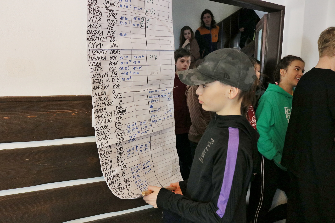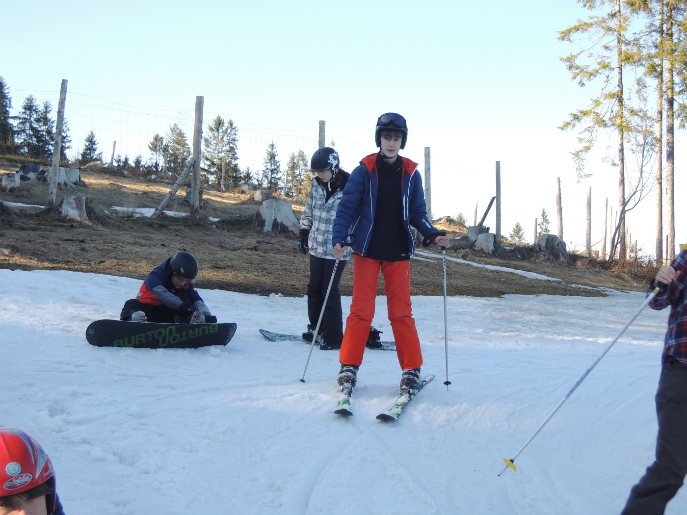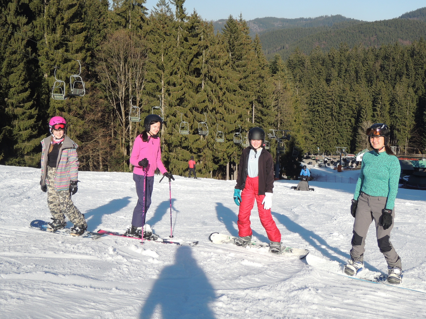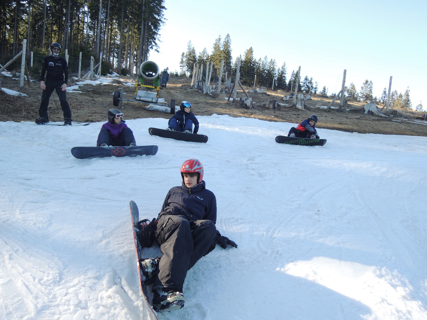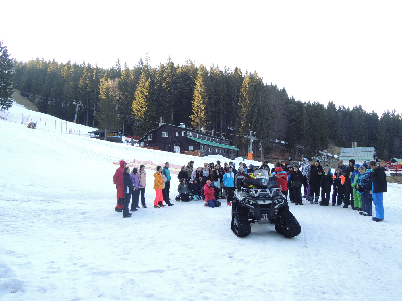 V druhé půli března úspěšně proběhl lyžařský výcvik druhého stupně na Starých Hamrech, Gruni. Dostavil se i sníh. Spíše tedy na nás ještě počkal. A tak se lyžaři i snowboardisté zdokonalovali pod ostrým jarním sluncem v náročném sjezdovém terénu. Stálo to za to, pokroky byly místy opravdu velké. S potěšením jsme zaznamenali i účast skokanů výcviku, rozumějte těch, co se na lyžích a snowboardu skokově vypracovali z nulových schopností k samostatnému zdolání sjezdovky. Vždycky se dá začít! O to líp ve správné partě a se zábavou. Závěr každého dne patřil společnému programu, během kterého padaly nové školní rekordy. Třeba ve výšce postavené věže ze sirek, času stráveném ve stoji na jedné noze nebo v rychlosti vypití sklenice vody za 6 sekund. Zkuste si! Stihli jsme turnájek v pingpongu. A jeden z večerů nás lapil v únikové hře. Nechyběly ani tanečky na diskotéce a kino. Dobrovolný závod ve slalomu, dobrovolně v retro kostýmu, uzavřel naši lyžovačku. Bojovalo se nejen v rychlosti, ale body padaly i za umělecký dojem z jízdy. Účast byla hojná, čísla padala vysoká, při předváděných tricích se tajil dech, a oblečky z dob dávno minulých byly pastvou pro oči ??. Počet zaslouženě rozdaných diplomů byl značný. Cesta zpět přes hřeben pěšky k busu by se dala nazvat poetickou vycházkou, a pak šup šup domů. Přežili všichni, děkujeme dětem i týmu pedagogů a instruktorům.