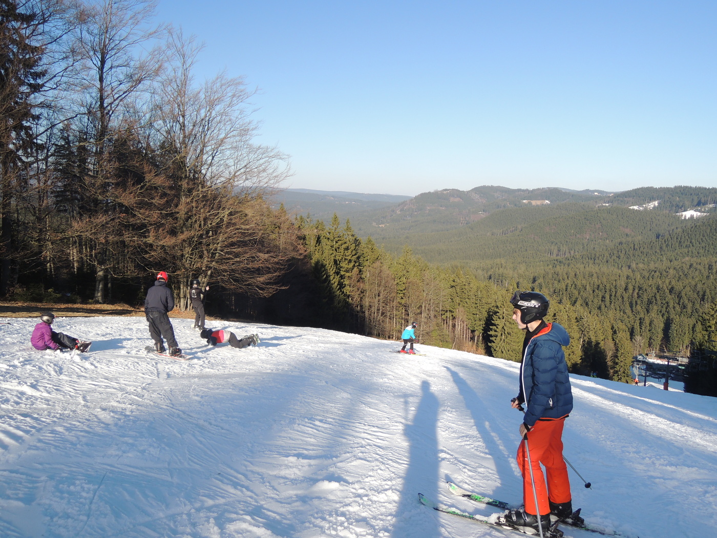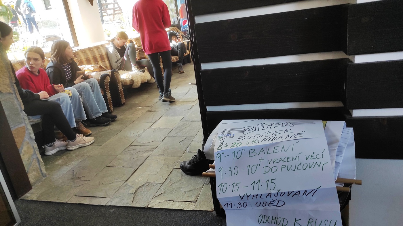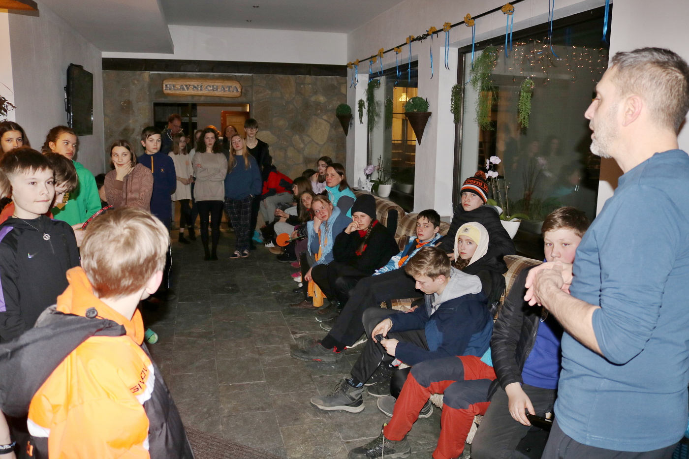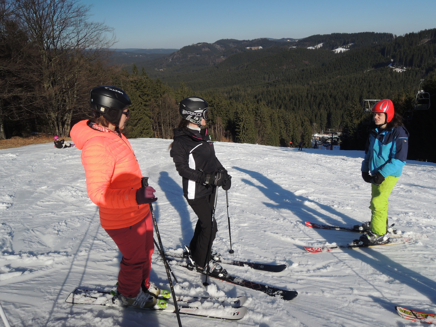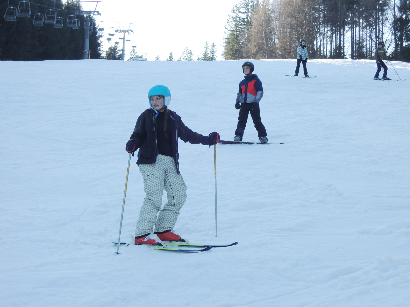 V druhé půli března úspěšně proběhl lyžařský výcvik druhého stupně na Starých Hamrech, Gruni. Dostavil se i sníh. Spíše tedy na nás ještě počkal. A tak se lyžaři i snowboardisté zdokonalovali pod ostrým jarním sluncem v náročném sjezdovém terénu. Stálo to za to, pokroky byly místy opravdu velké. S potěšením jsme zaznamenali i účast skokanů výcviku, rozumějte těch, co se na lyžích a snowboardu skokově vypracovali z nulových schopností k samostatnému zdolání sjezdovky. Vždycky se dá začít! O to líp ve správné partě a se zábavou. Závěr každého dne patřil společnému programu, během kterého padaly nové školní rekordy. Třeba ve výšce postavené věže ze sirek, času stráveném ve stoji na jedné noze nebo v rychlosti vypití sklenice vody za 6 sekund. Zkuste si! Stihli jsme turnájek v pingpongu. A jeden z večerů nás lapil v únikové hře. Nechyběly ani tanečky na diskotéce a kino. Dobrovolný závod ve slalomu, dobrovolně v retro kostýmu, uzavřel naši lyžovačku. Bojovalo se nejen v rychlosti, ale body padaly i za umělecký dojem z jízdy. Účast byla hojná, čísla padala vysoká, při předváděných tricích se tajil dech, a oblečky z dob dávno minulých byly pastvou pro oči ??. Počet zaslouženě rozdaných diplomů byl značný. Cesta zpět přes hřeben pěšky k busu by se dala nazvat poetickou vycházkou, a pak šup šup domů. Přežili všichni, děkujeme dětem i týmu pedagogů a instruktorům.