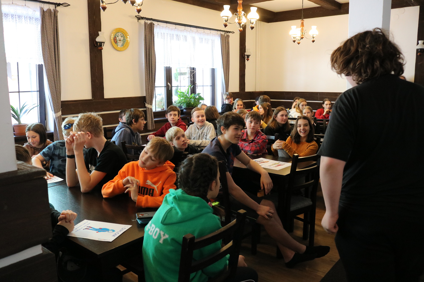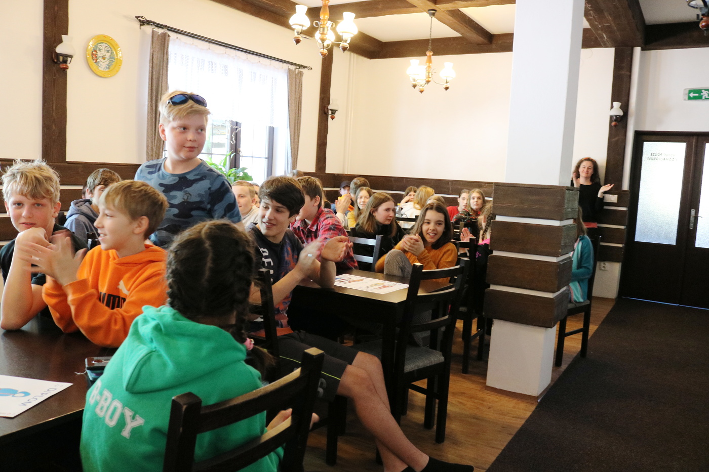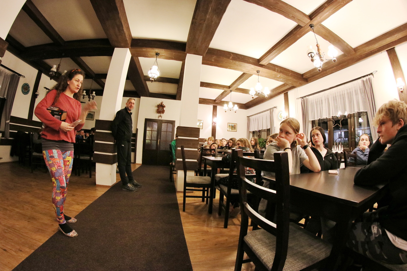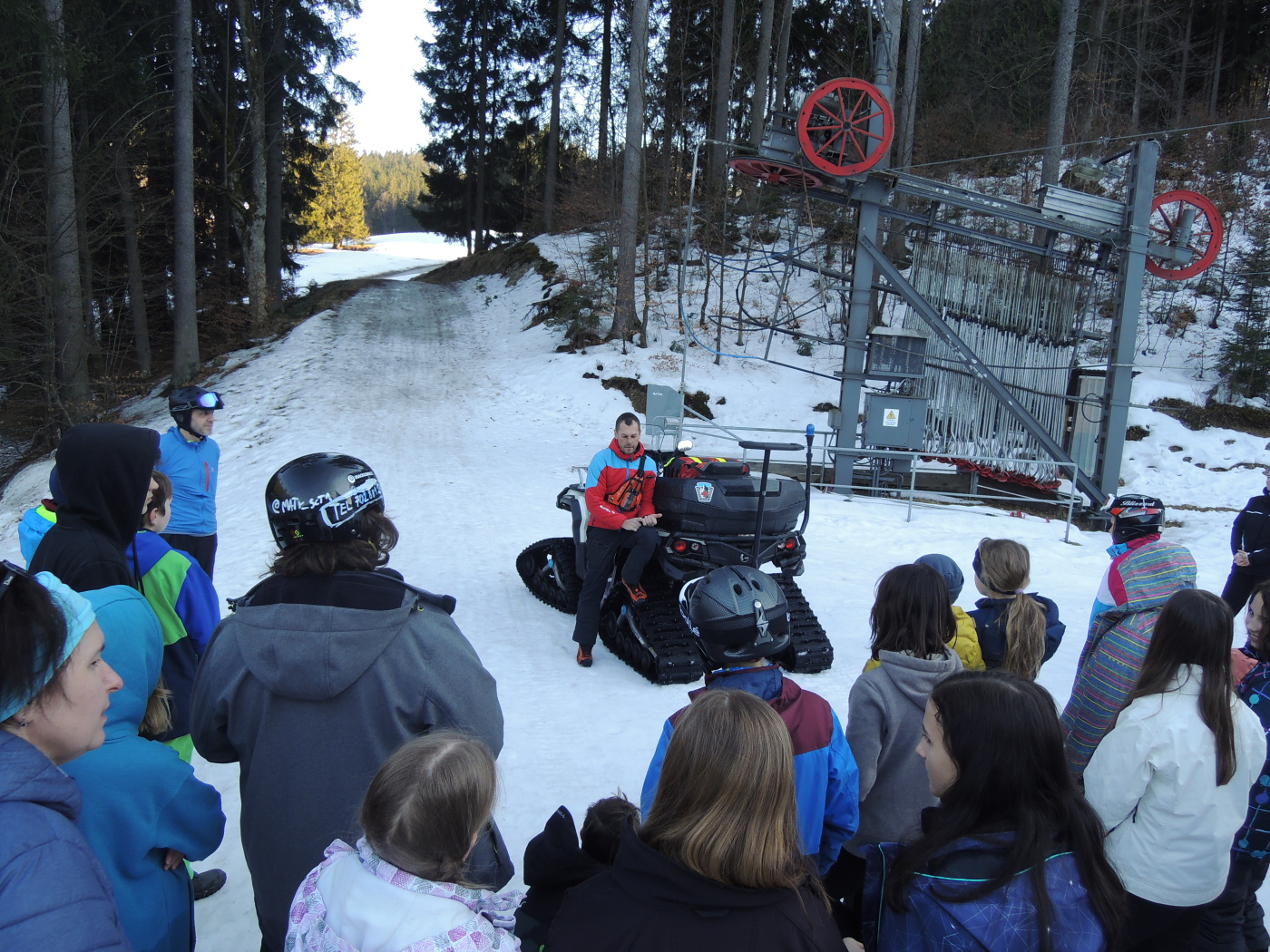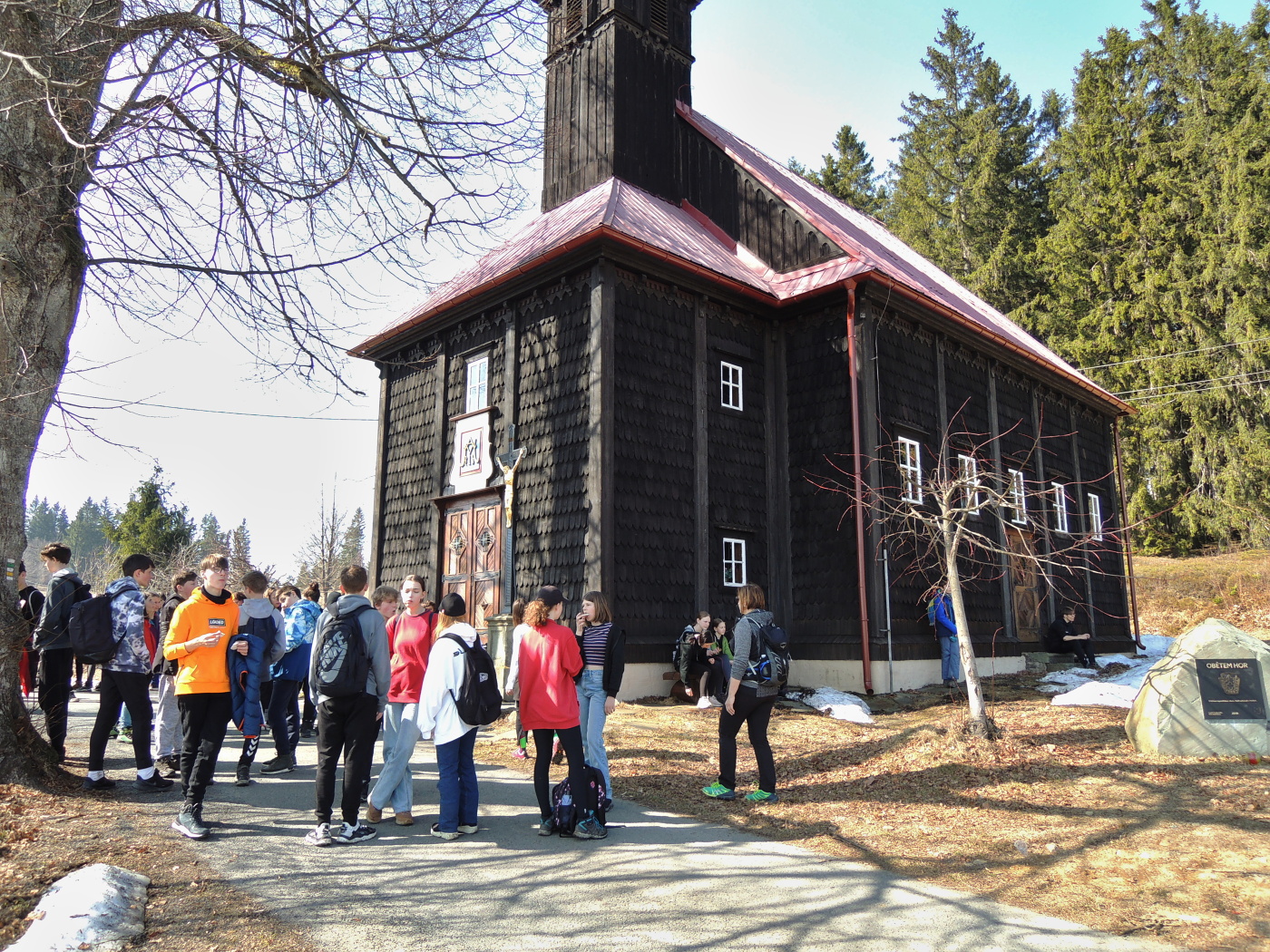 V druhé půli března úspěšně proběhl lyžařský výcvik druhého stupně na Starých Hamrech, Gruni. Dostavil se i sníh. Spíše tedy na nás ještě počkal. A tak se lyžaři i snowboardisté zdokonalovali pod ostrým jarním sluncem v náročném sjezdovém terénu. Stálo to za to, pokroky byly místy opravdu velké. S potěšením jsme zaznamenali i účast skokanů výcviku, rozumějte těch, co se na lyžích a snowboardu skokově vypracovali z nulových schopností k samostatnému zdolání sjezdovky. Vždycky se dá začít! O to líp ve správné partě a se zábavou. Závěr každého dne patřil společnému programu, během kterého padaly nové školní rekordy. Třeba ve výšce postavené věže ze sirek, času stráveném ve stoji na jedné noze nebo v rychlosti vypití sklenice vody za 6 sekund. Zkuste si! Stihli jsme turnájek v pingpongu. A jeden z večerů nás lapil v únikové hře. Nechyběly ani tanečky na diskotéce a kino. Dobrovolný závod ve slalomu, dobrovolně v retro kostýmu, uzavřel naši lyžovačku. Bojovalo se nejen v rychlosti, ale body padaly i za umělecký dojem z jízdy. Účast byla hojná, čísla padala vysoká, při předváděných tricích se tajil dech, a oblečky z dob dávno minulých byly pastvou pro oči ??. Počet zaslouženě rozdaných diplomů byl značný. Cesta zpět přes hřeben pěšky k busu by se dala nazvat poetickou vycházkou, a pak šup šup domů. Přežili všichni, děkujeme dětem i týmu pedagogů a instruktorům.