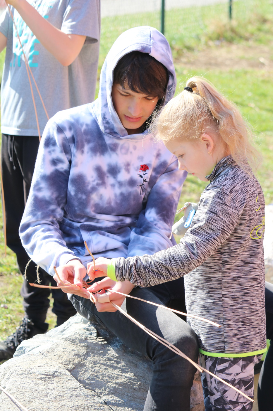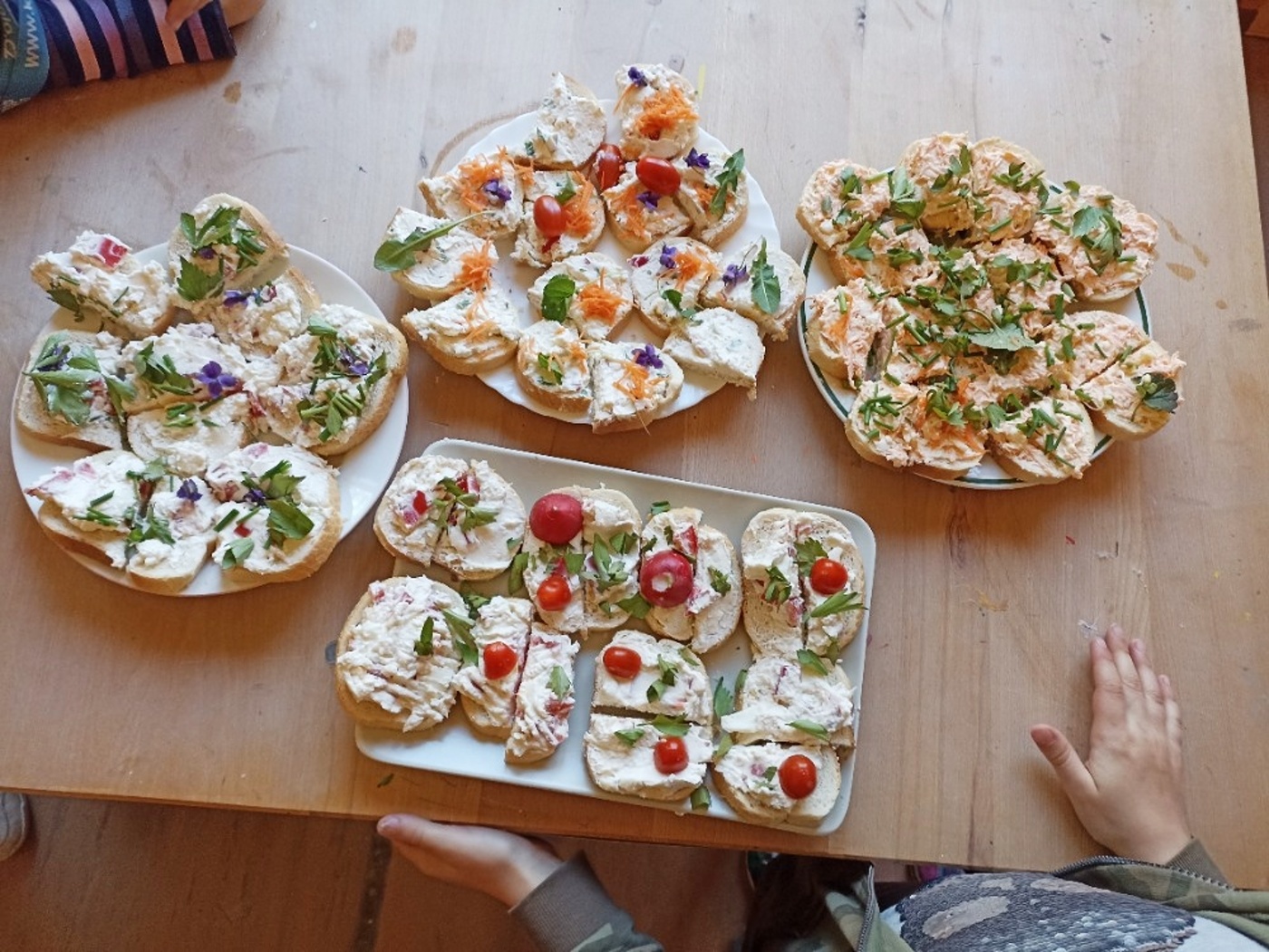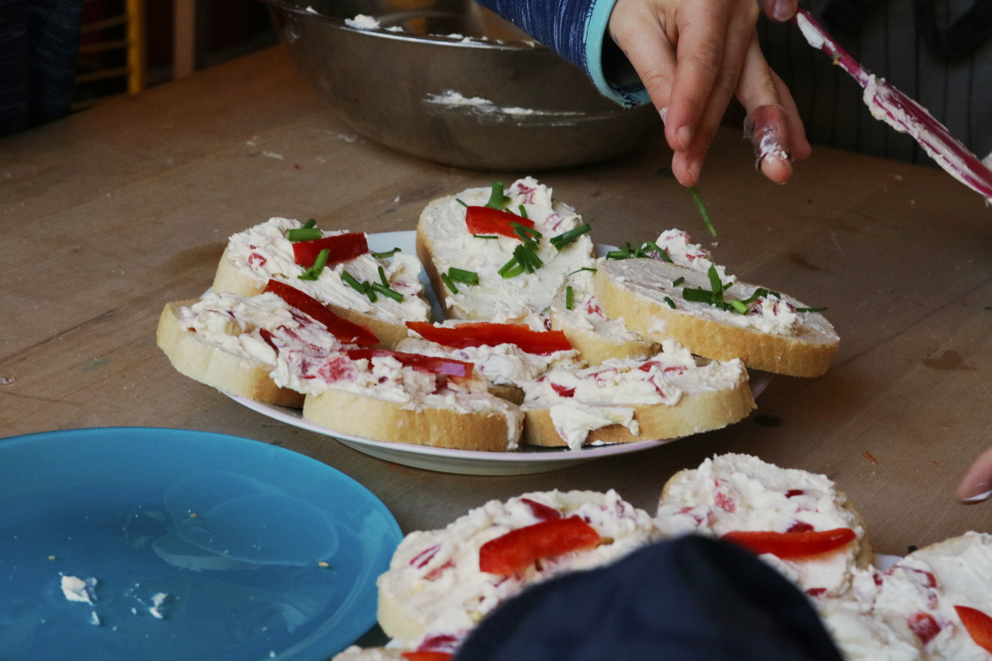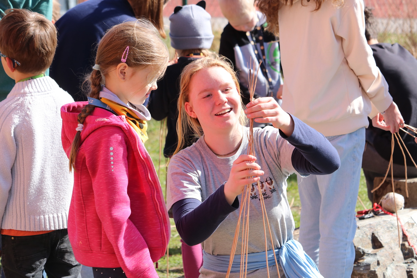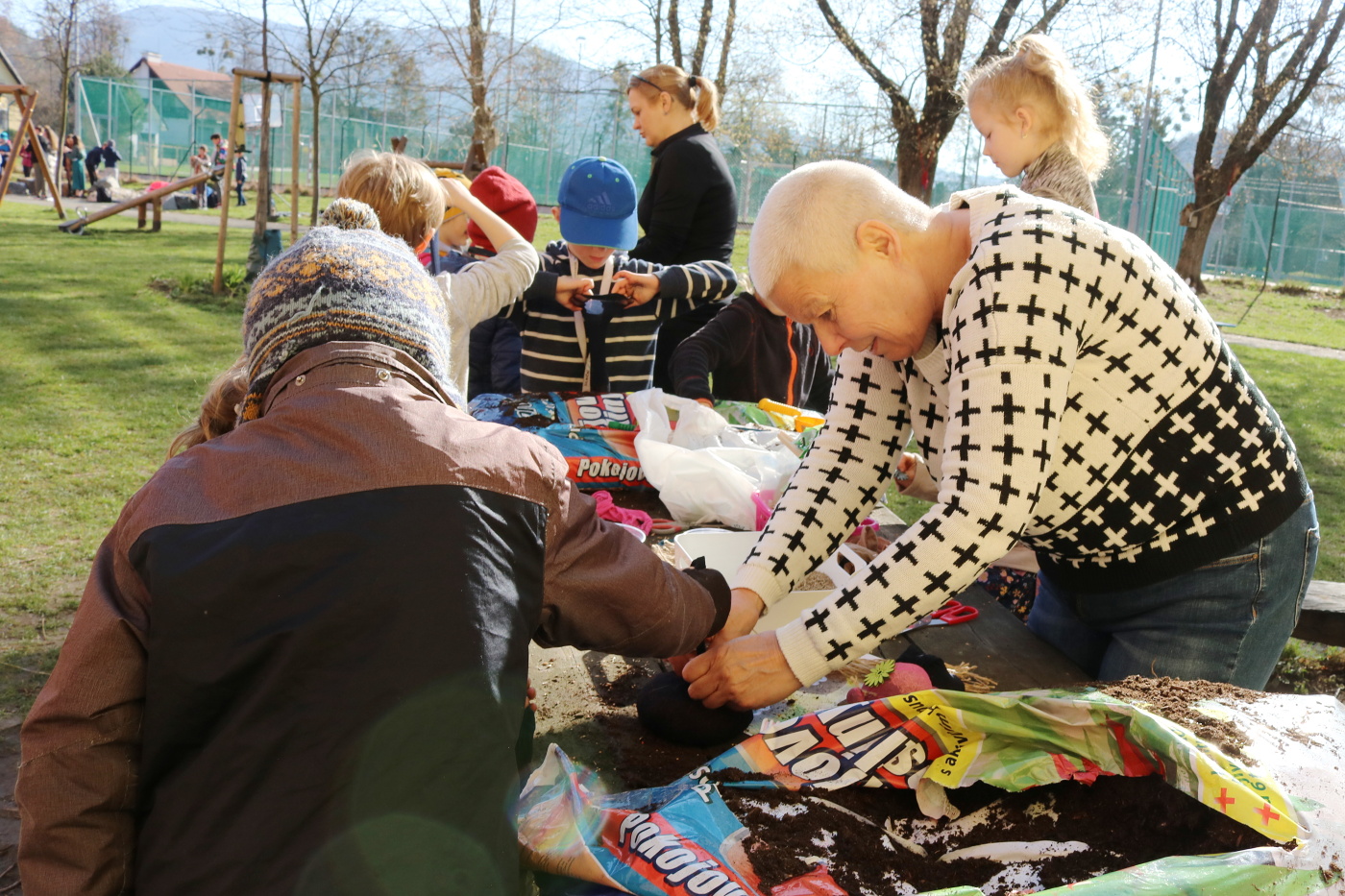 Do školy jsme se my, žáci prvního stupně, vydali tentokrát bez učebnic, vyzbrojeni jsme byli naopak vajíčky natvrdo, vajíčky syrovými, kapesním nožíkem. Sešli jsme se na zahradě, kde nás uvítali velikonoční kuřátko, zajíček a přes telefon i beránek. Pak už jsme se přesouvali od jednoho stanoviště ke druhému a na každém nám něco vzniklo. Barvili jsme a zdobili vajíčka, kuchtili jsme jarní pokrmy a pomazánky, vyrobili jsme si veselou hlavu s vlasy z trávy a s pomocí ochotných osmáků jsme si upletli z proutí tatar. Někteří se navíc stihli naučit i nové šmigrustovací říkadlo. Velikonoce můžou začít, jsme na ně připravení!