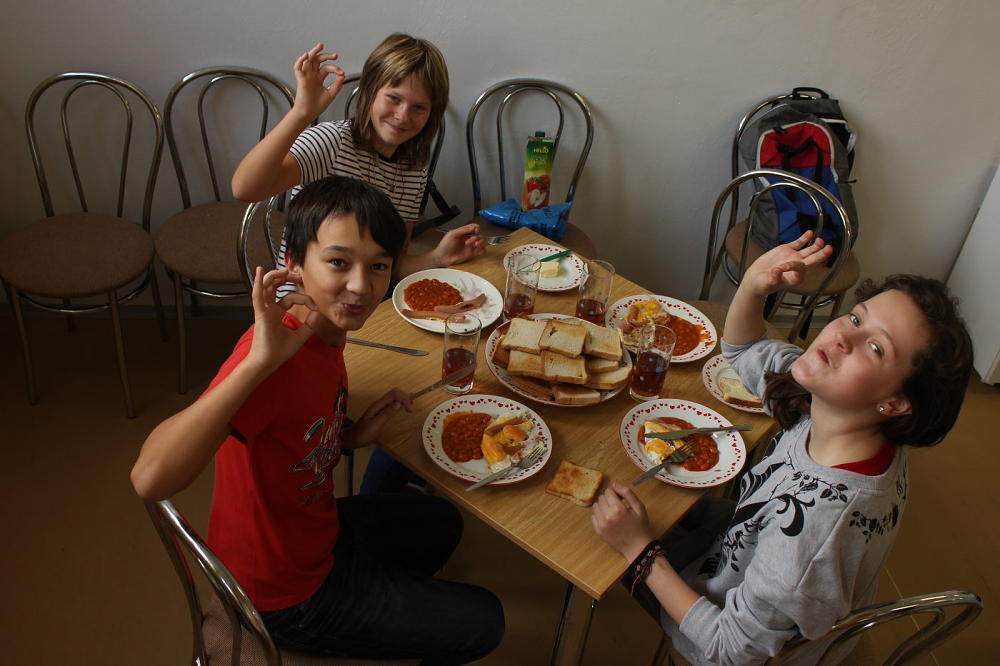 První skupina připravila a servírovala tradiční anglickou snídani - Tradition English breakfeast, složenou z: