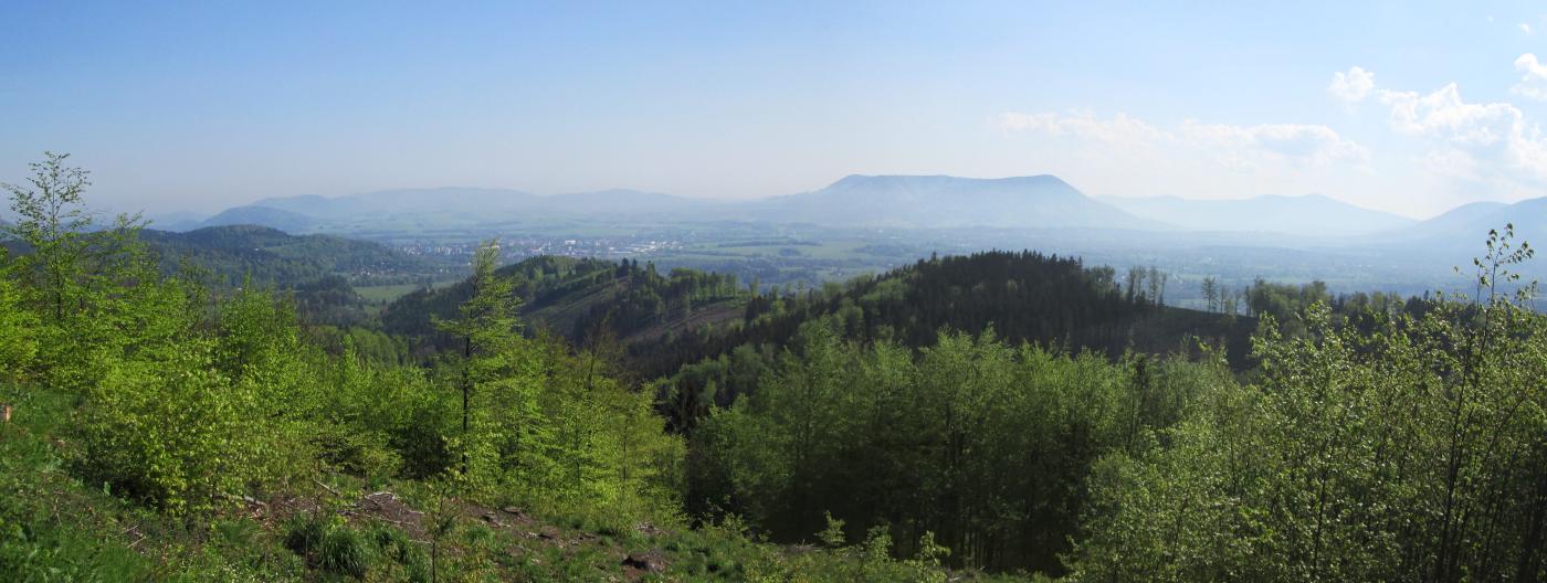 Vydali jsme se společně od hudebního altánku a bystře vystoupali na Karlův kopec. Téměř všichni se postupně pokochali pohledem na Rožnov a na ochozu rozhledny zazněla i první píseň.