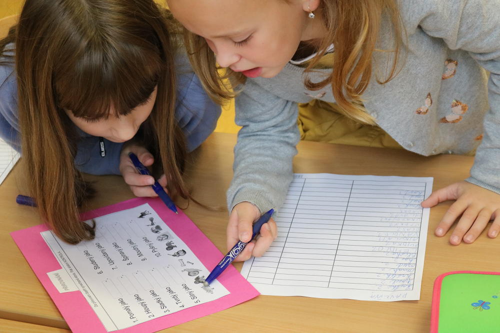 Jako každý den, rozplétáme i dnes příběh na pokračování. Je o mimozemšťanovi Zetíkovi, co nedopatřením spadl na planetu Zemi. Posloucháme, čteme a to, co si zapamatujeme si umíme napsat. Mezitím si stihneme